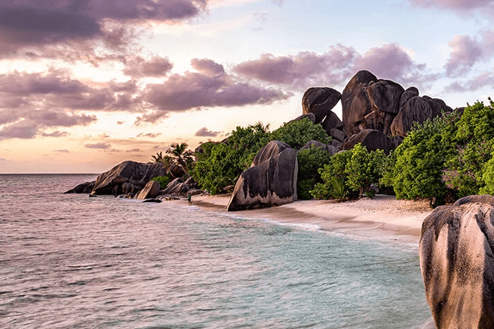 Na ilha de La Digue, no arquipélago das Seychelles, a praia se destaca pelos blocos de granito esculpidos pela natureza, águas turquesa e atmosfera quase mágica. Segundo a Wikipédia: “listada como uma das melhores praias do mundo”.
